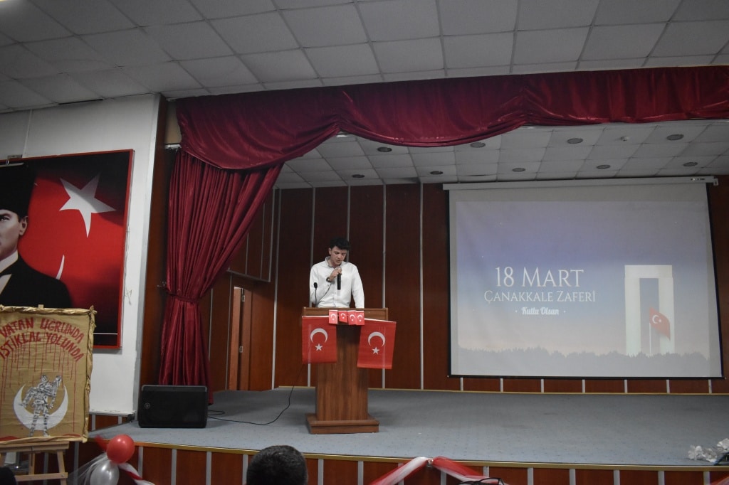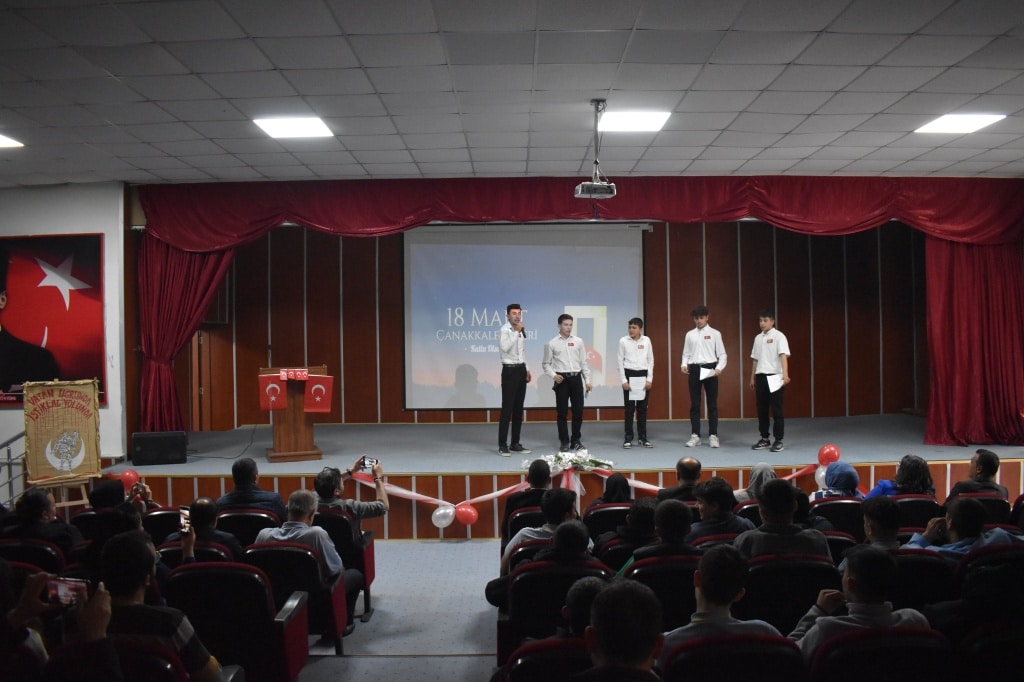 18 Mart Çanakkale Zaferi'nin yıldönümü, okulumuz konferans salonunda gerçekleştirilen etkinliklerle anılmıştır. Öğretmen ve öğrencilerimiz çeşitli söyleşilerle, Türk Tarihinde dönüm noktası olmuş bu savaşı, yapılan fedakarlıkları, "Çanakkale Geçilmez!" ruhunu tekrardan hatırlatmaya çalışmışlardır. Etkinliklerin sonunda ise okulumuza ismini veren şehidimizin ailesine okulumuz tarafından hazırlanmış bir çerçeveli resmi hediye edilmiştir.